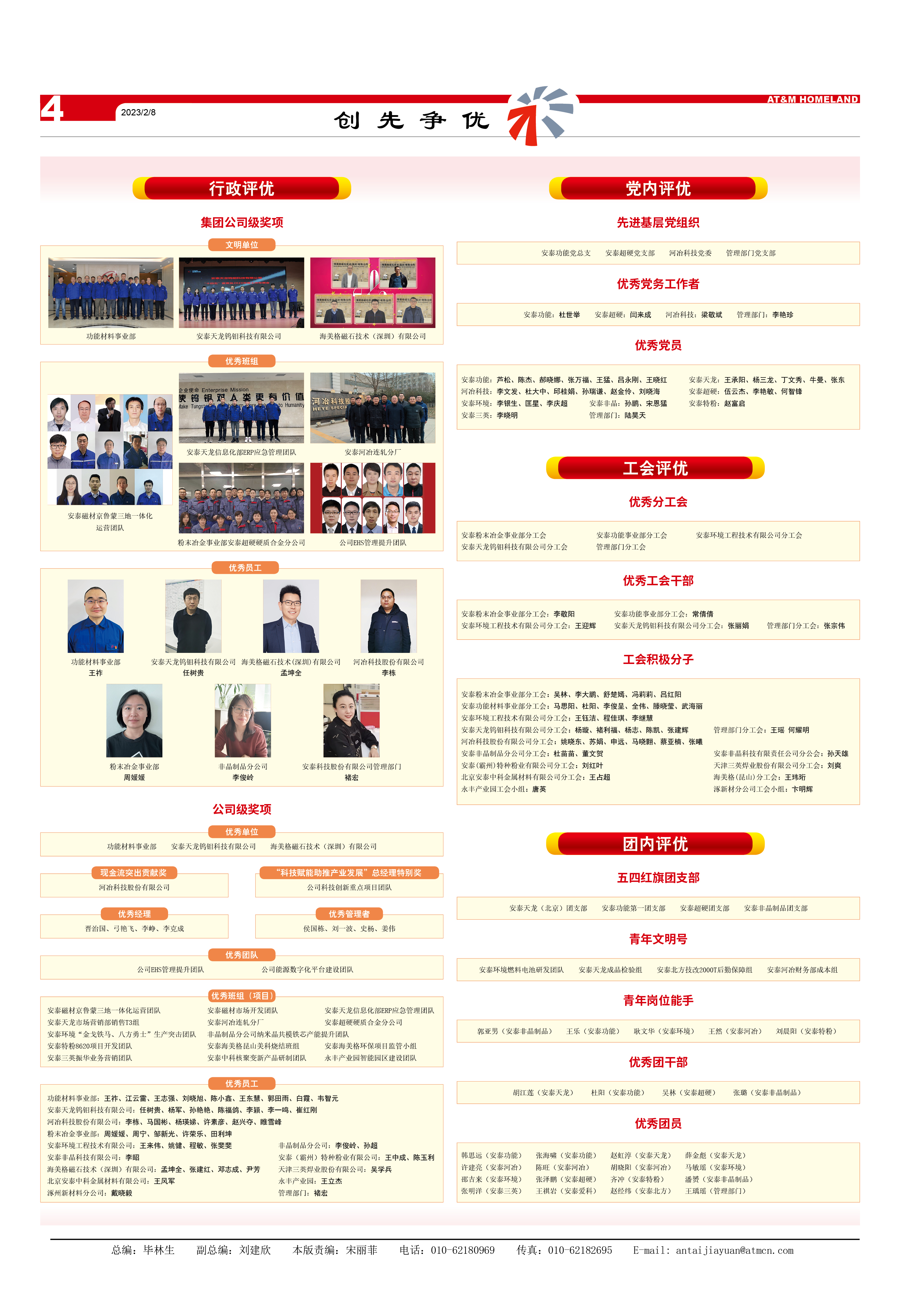 郭亚男(安泰非晶制品)、王乐(安泰功能)、耿文华(安泰环境)、王然(安泰河冶)、刘晨阳(安泰特粉)