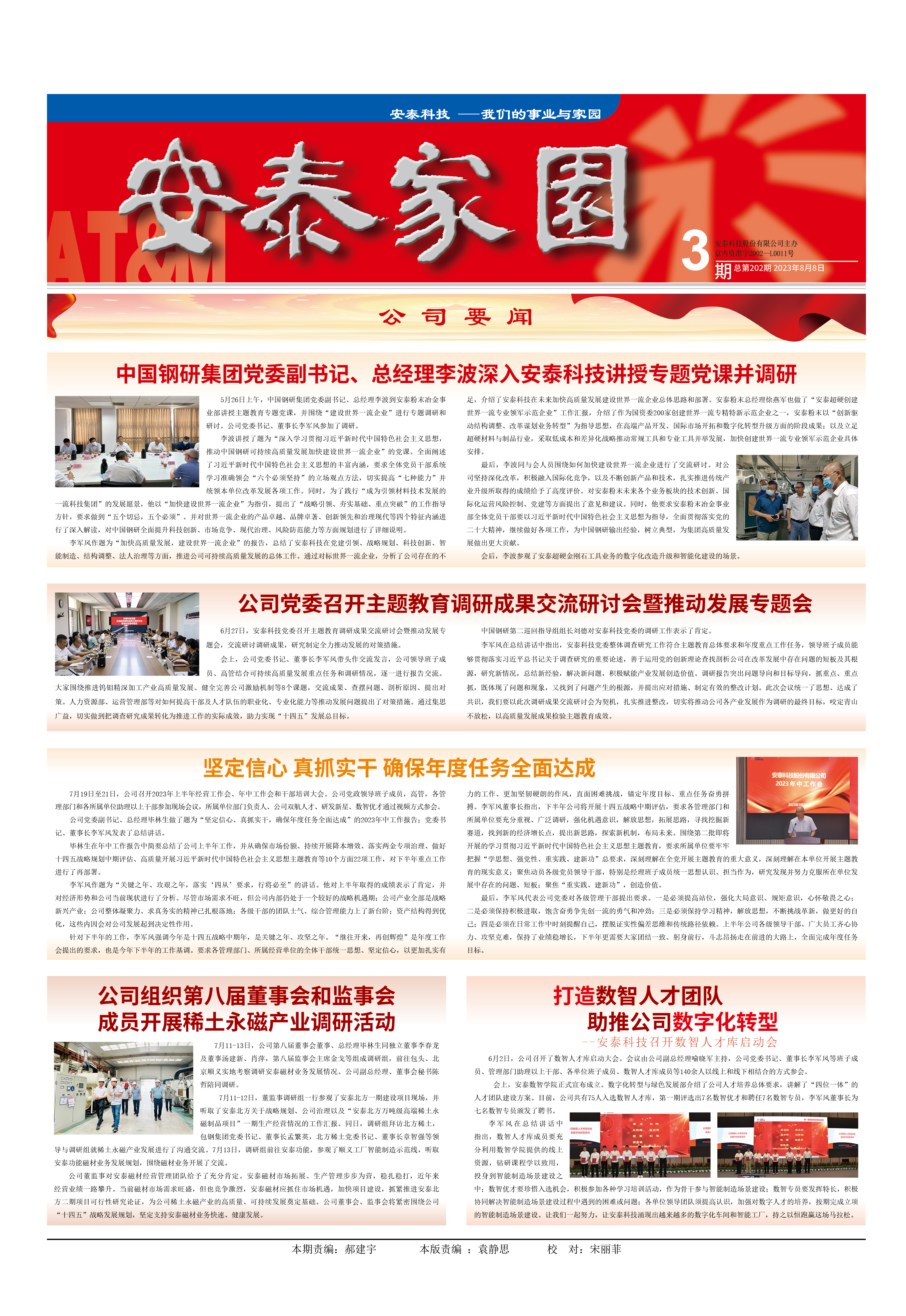 5月26日上午,中国钢研集团党委副书记、总经理李波到安泰粉末冶金事业部讲授主题教育专题党课,并围绕“建设世界一流企业”进行专题调研和研讨。公司党委书记、董事长李军风参加了调研。