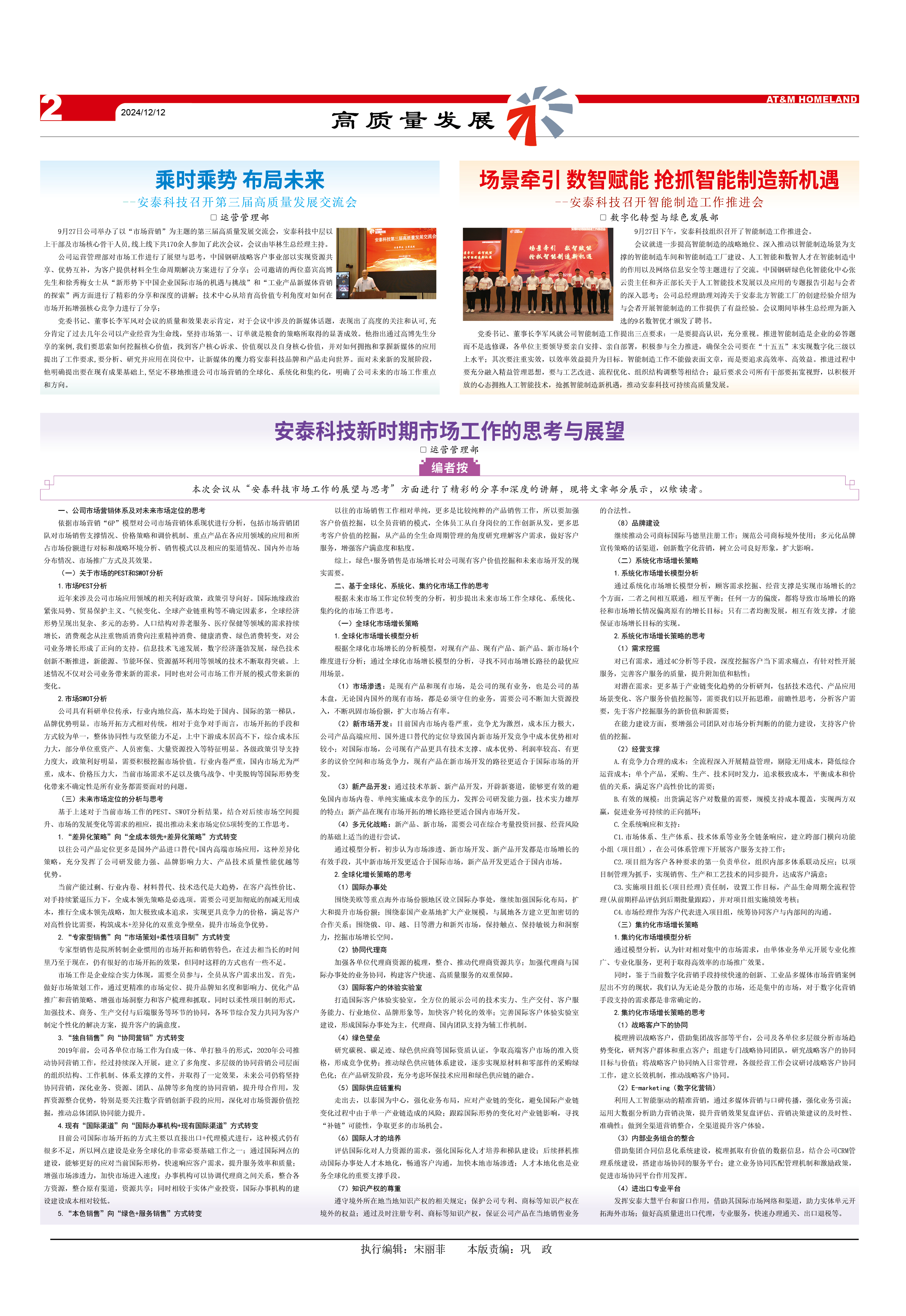 党委书记、董事长李军风对会议的质量和效果表示肯定,对于会议中涉及的新媒体话题,表现出了高度的关注和认可,充分肯定了过去几年公司以产业经营为生命线,坚持市场第一、订单就是粮食的策略所取得的显著成效。他指出通过高博先生分享的案例,我们要思索如何挖掘核心价值,我到客户核心诉求、价值观以及自身核心价值,并对如何拥抱和掌握新媒体的应用提出了工作要求,要分析、研究并应用在岗位中,让新媒体的魔力将安泰科技品牌和产品走向世界。面对未来新的发展阶段,他明确提出要在现有成果基础上,坚定不移地推进公司市场营销的全球化、系统化和集约化,明确了公司未来的市场工作重点和方向。