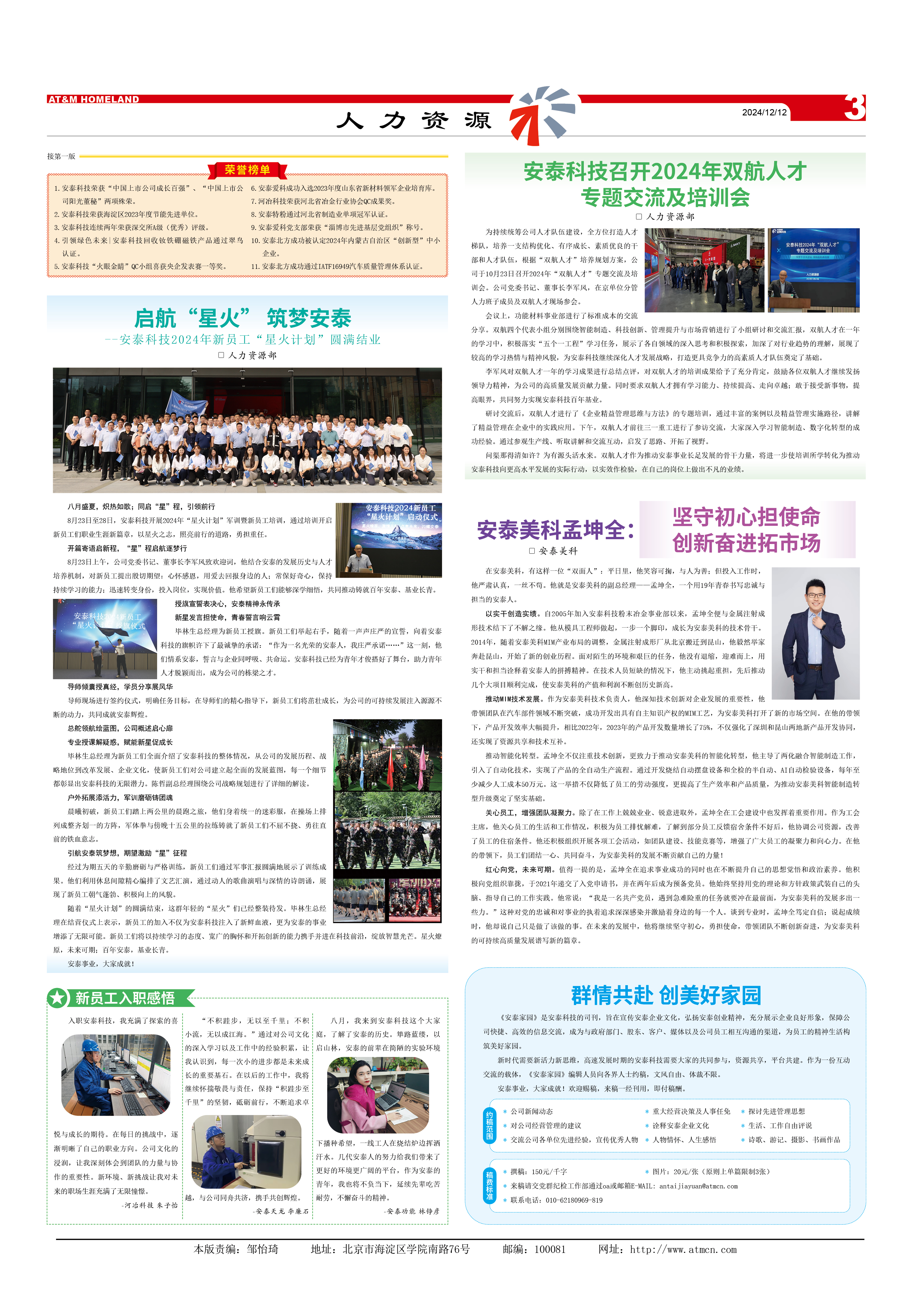 1.安泰科技荣获“中国上市公司成长百强”、“中国上市公司阳光董秘”两项殊荣。