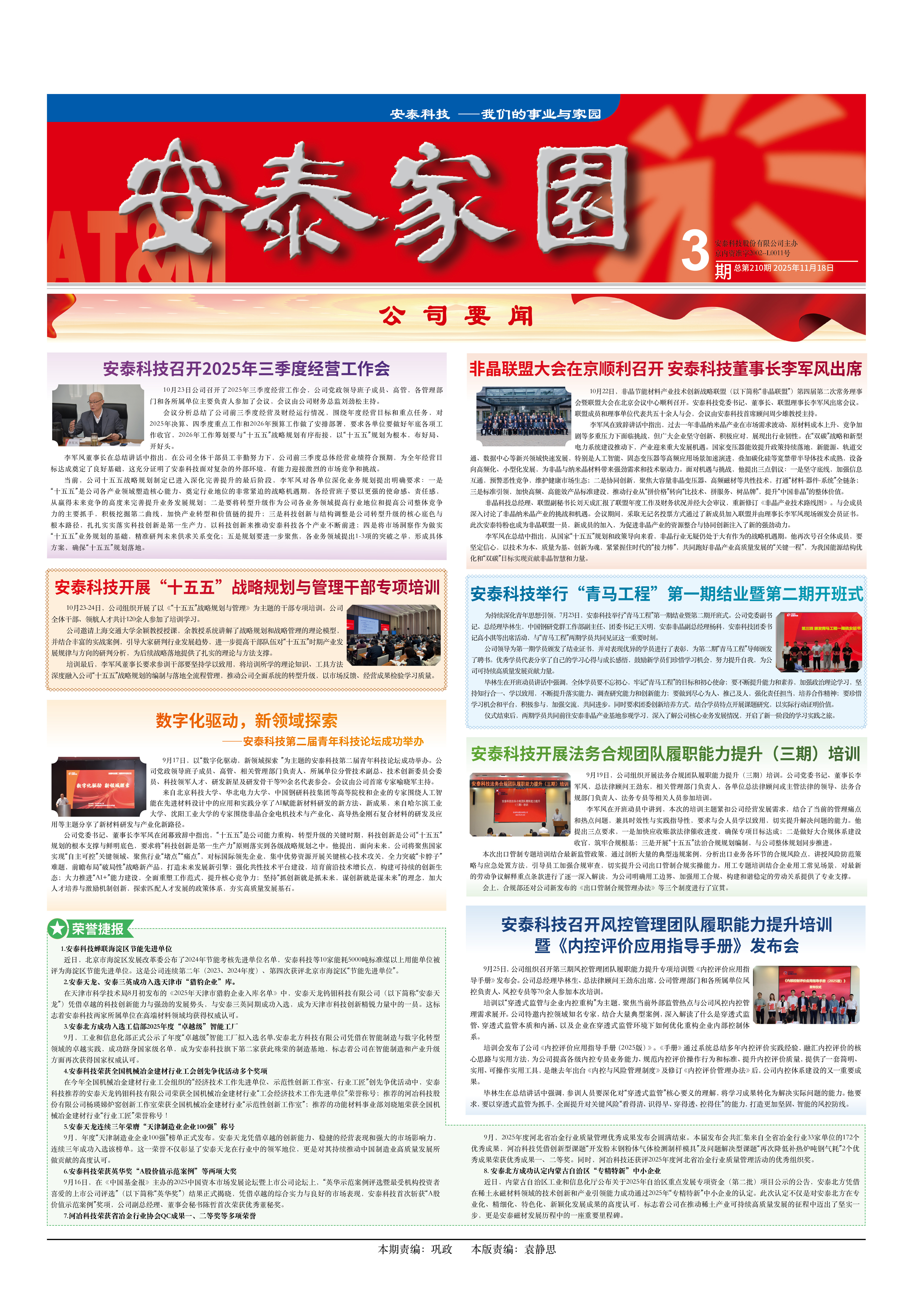 李军风董事长在总结讲话中指出,在公司全体干部员工辛勤努力下,公司前三季度总体经营业绩符合预期,为全年经营目标达成奠定了良好基础,这充分证明了安泰科技面对复杂的外部环境,有能力迎接激烈的市场竞争和挑战。